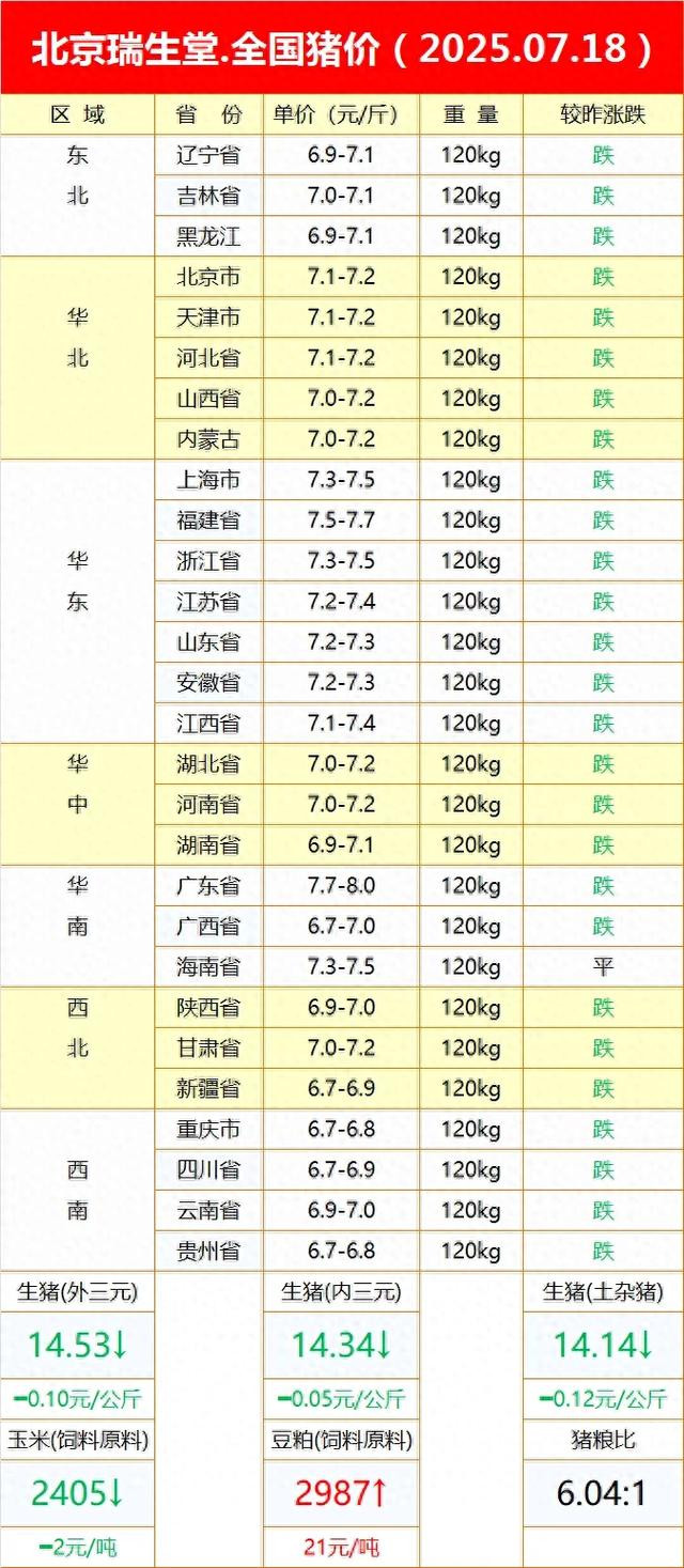 > 2025-07-18全国猪价早知道
